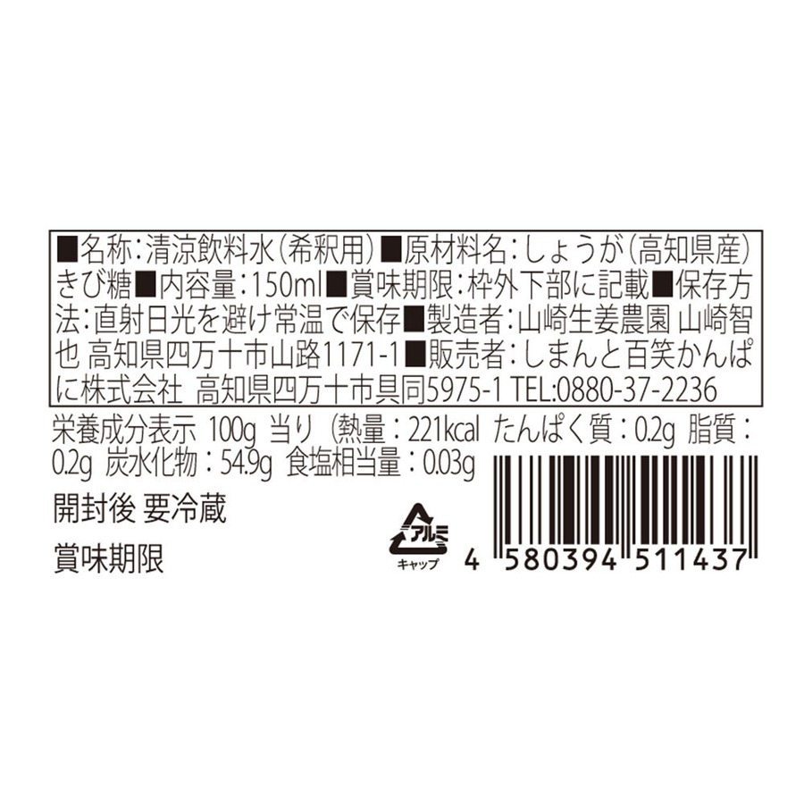生姜シロップ 国産 無添加 【四万十 黄金生姜】希釈用 高知
