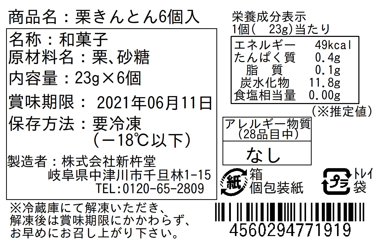 ■保存方法:要冷凍(-18°C以下)